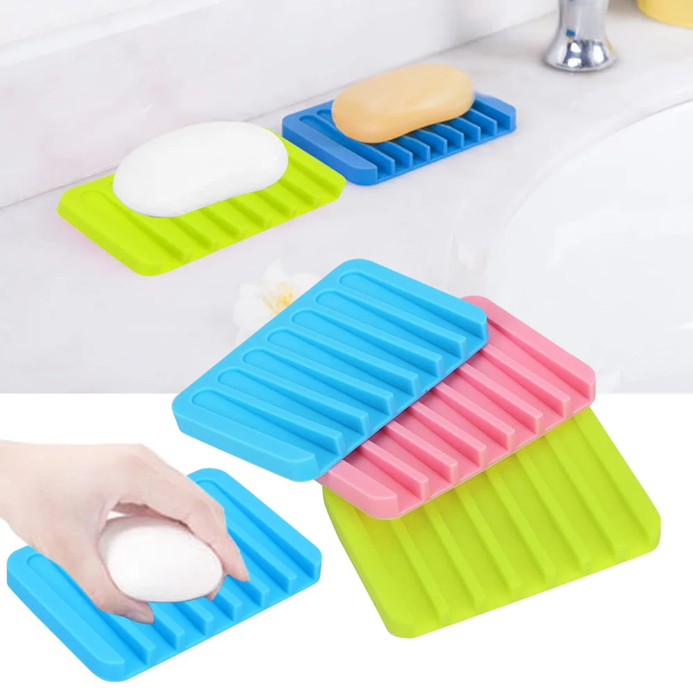 Best deal Anti Slip Silicone Soap Container Bathroom Products Portable Soap Dishes Flexible Soap Plate