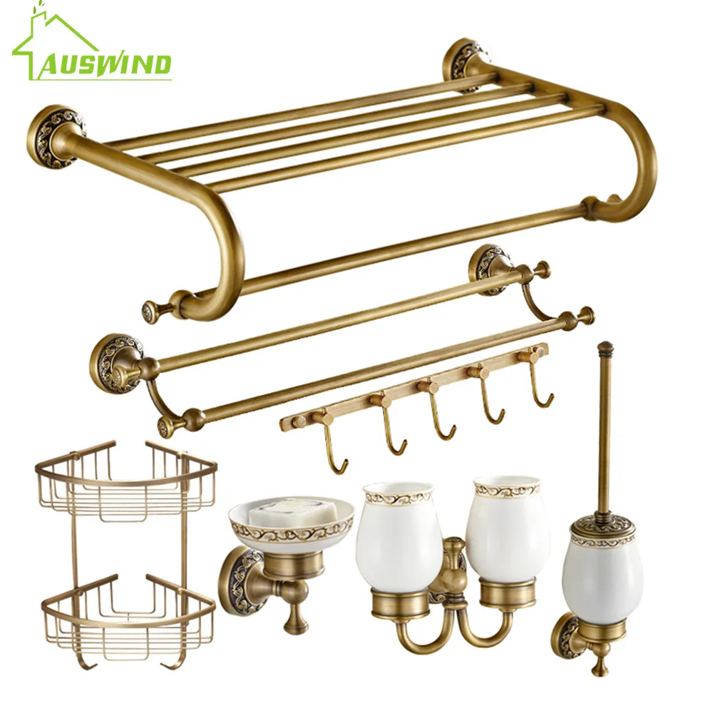 Europe Bronze Bathroom Hardware Sets Antique Solid Brass Carved Bathroom Accessories Bathroom Produ