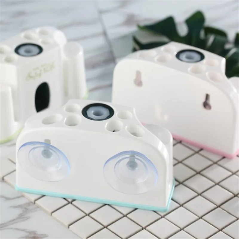 CTREE 8 Colors Cute Cartoon Tooth Shape Face 4 Hole Fashion Tooth Style Toothbrush Holder Bracket Container Bathroom Wash C849