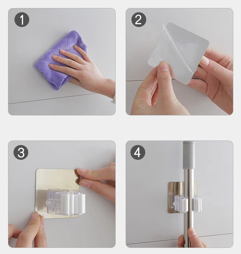 1pcs Wall Mounted Mop Holder Brush Hanger Storage Rack Kitchen Organizer Storage Holders Racks Hanging Bathroom Cleaning Tools