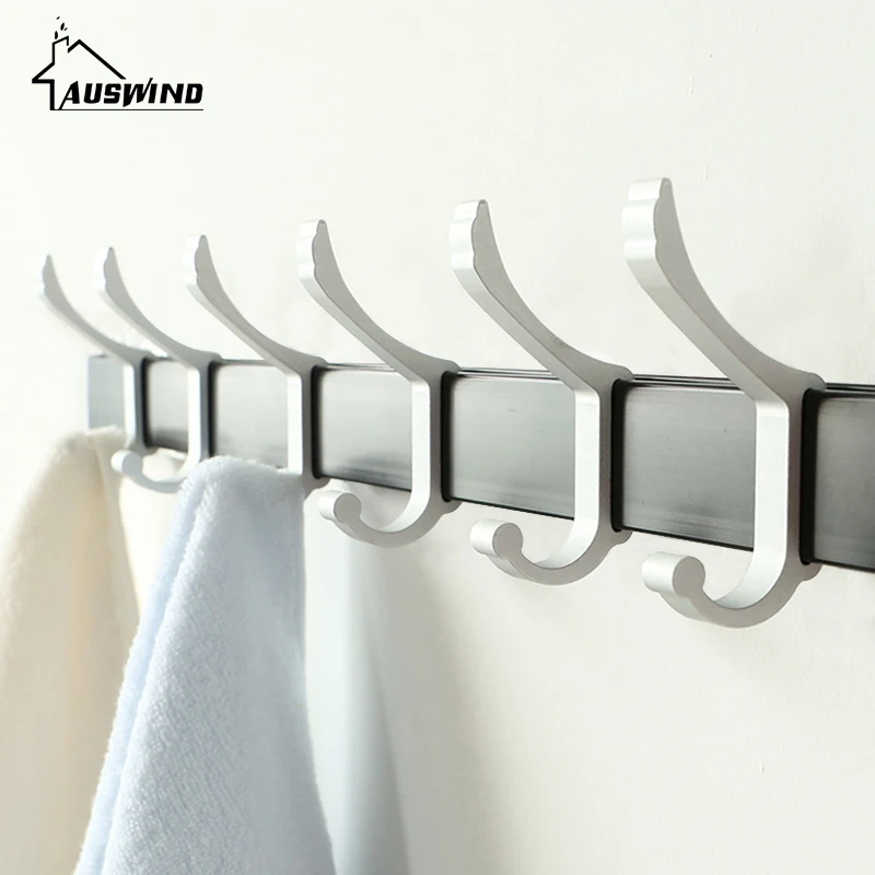 AUSWIND Modern coat hooks Space aluminum Row hooks clothes hooks Silver color towel hooks bathroom/