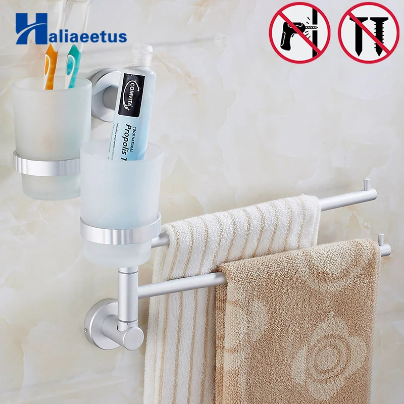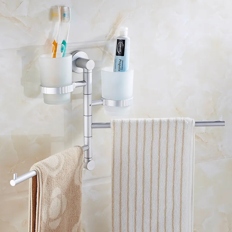 Nail Free Space metal Towel Rack Multi Arms Towel Hanging with cup Bathroom Towel Rack Movable Towe
